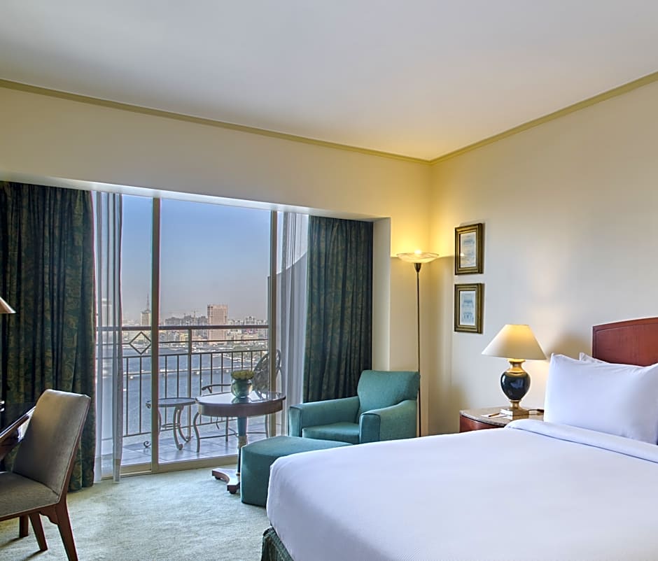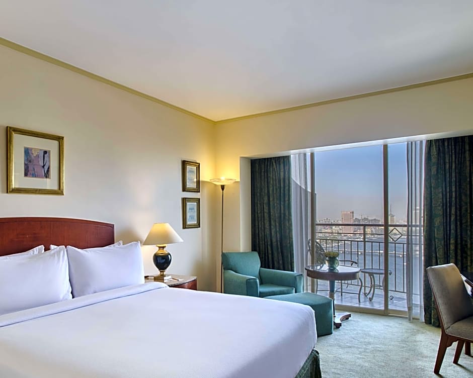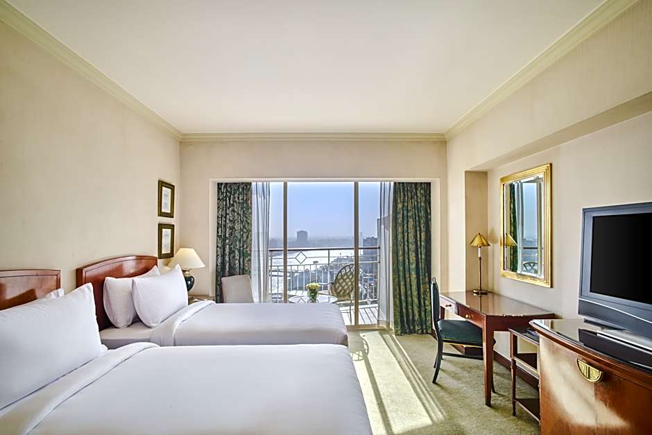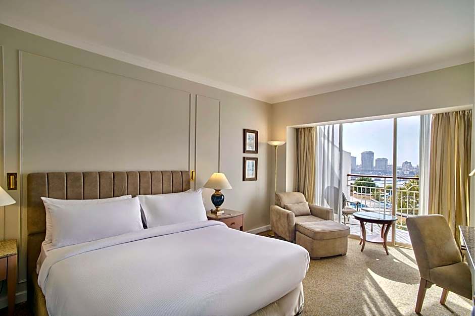 This spacious room offers a separate work area and a private balcony overlooking the Nile River.