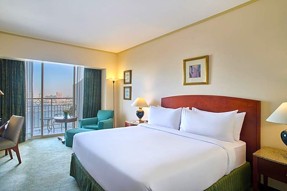 This spacious room offers a separate work area and a private balcony overlooking the Nile River.