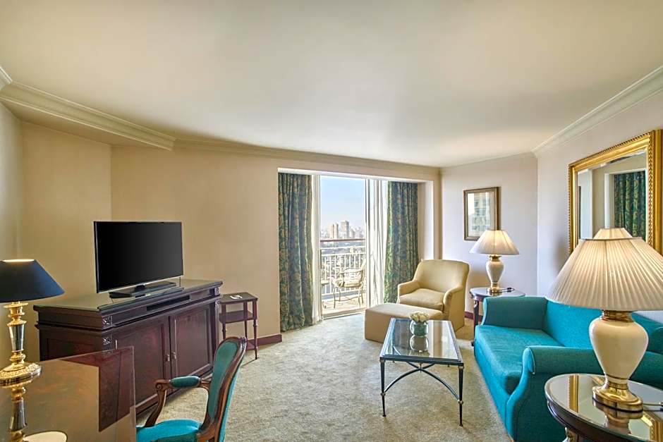 This large suite has 2 balconies, a private lounge and a marble bathroom with walk-in shower and separate bathtub.